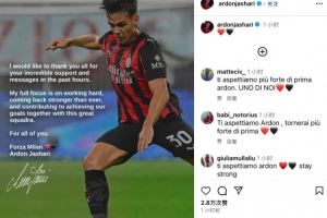 将长期伤缺😢亚沙里社媒:会以比过往更强大姿态回归,佛砸米兰